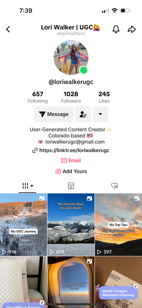 Colorado-based content creator specializing in relatable User-Generated Content (UGC). Lori's content truly connects with her viewers with her influential lifestyle.